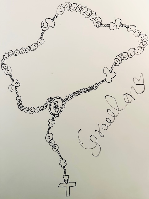 Recently, my youngest daughter, Gracelan, drew a picture of a rosary. Each bead had a little happy face on it. When I saw it, I smiled—then paused. Something about it gently arrested my heart.